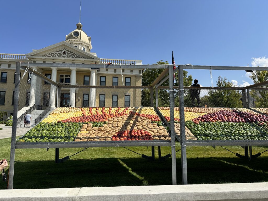 Peach Days is a big deal for Box Elder County. The Kiwanis Club of Brigham City and the Key Club of Box Elder High School along with other volunteer organizations come together to produce a large fruit display. This display has been a tradition for many years and features a new design every year. The Stand is put together by the Kiwanis Club, and the fruit is placed by the Key Club and other high school organizations. The fruit is generously donated by Tagge’s Fruit stand.
